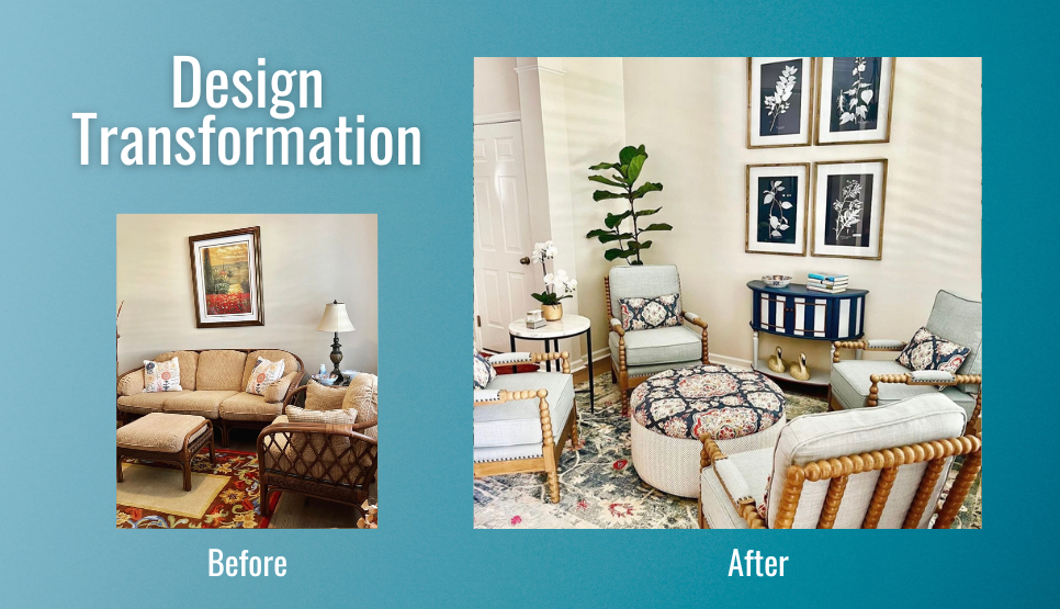 My husband and I found Lori after we repainted our entire interior and replaced our flooring. It was time for a refresh and a colleague mentioned she did nice work. She helped us with window treatments, a custom sofa, reupholstered kitchen chairs, living room furniture layout changes, updating furniture and linens in our master bedroom, and a new light fixture for our dining room. Lori was able to decipher my taste and pulled our vision together. We love the look and feel of all the updates!
